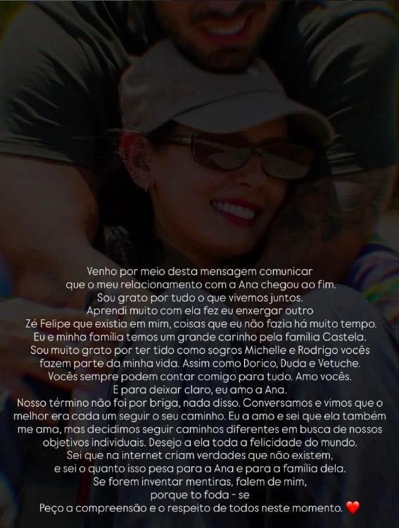 Anúncio em conjunto do fim de relacionamento (Foto: reprodução/Instagram/@zefelipe)