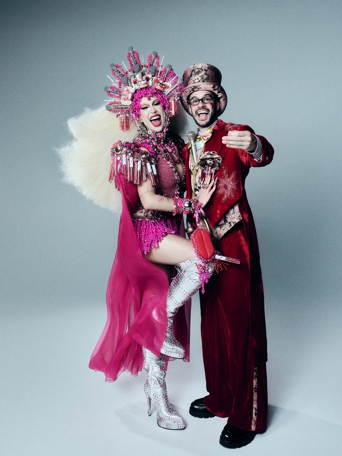 O visual, desenvolvido por Victor Hugo Mattos, com botas assinadas por Lucas Regal e beleza criada por Will Vieira, é uma explosão de cores, textura e significado. O rosa predomina em cada elemento, representando a essência de sua marca Boca Rosa e transformando a homenagem em algo profundamente pessoal. No centro da produção, a boca em tom vermelho intenso revive o primeiro batom lançado por Bianca, chamado Maravilha, uma referência direta ao universo da inspiração. O resultado é um visual que exala força, feminilidade e história, um encontro entre o glamour teatral de Elke e a estética pop de Bianca.