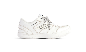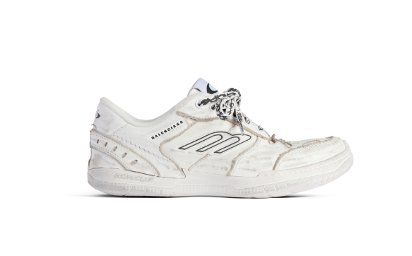 O calçado chega em versões com diferentes níveis de desgaste — do mais sutil ao totalmente “usado”. Sendo construído inteiramente em couro com bordas cruas, cadarços com arte em estilo grafite e acabamento que imita marcas de uso intenso. A proposta mantém a essência de Demna, que se despede da direção criativa da marca, e propõe um olhar artesanal sobre o streetwear, apostando novamente em proporções ousadas e estética que é deliberadamente “imperfeita”.