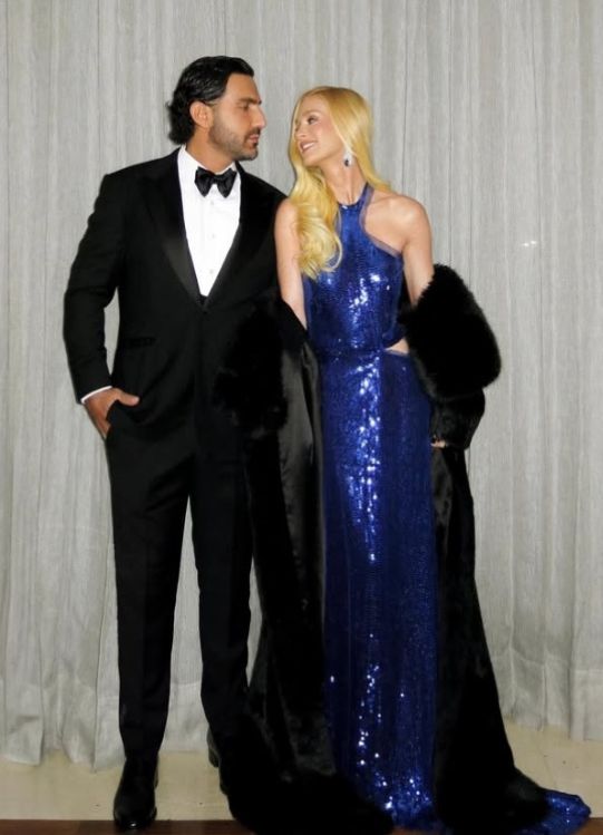 Com o tema “The Great Gatsby”, romance que inspirou a festa e tem como cenário o luxo dos anos 20 nos Estados Unidos, Marina Ruy Barbosa se destacou no look ao escolher um vestido azul, longo, feito com paetês. O vestido, além dos paetês, tinha as alças presas atrás da nuca, era aberto na lateral e nas costas, silhueta justa e cauda no estilo sereia. Além da elegância e luxo do vestido, o que também chamou atenção foi o modelo, criado pela Gucci, que faz parte da coleção de inverno da grife francesa de 2004, com assinatura de Tom Ford, que era o diretor criativo da Gucci na época. Seu noivo, Abdul Fares, optou pelo estilo Black Tie, igualmente elegante e luxoso.