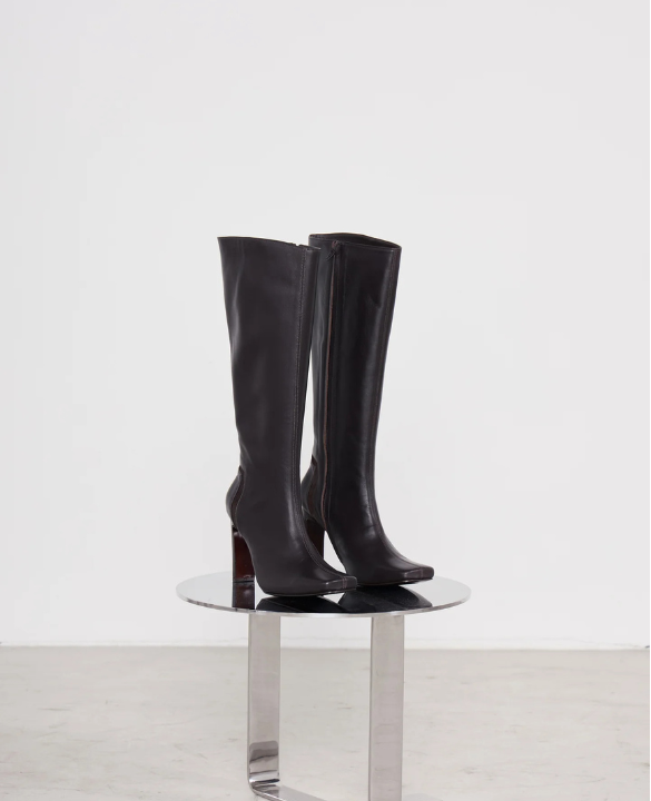 Os mocassins surgem em duas versões: um modelo em camurça, ideal para o uso cotidiano, e outro em couro trançado, com bico quadrado e estrutura firme. Já o scarpin e a bota trazem salto retangular e acabamento primoroso, reafirmando o desejo de Sasha de criar o “clássico bem-feito”, uma assinatura de estilo que une conforto e sofisticação.