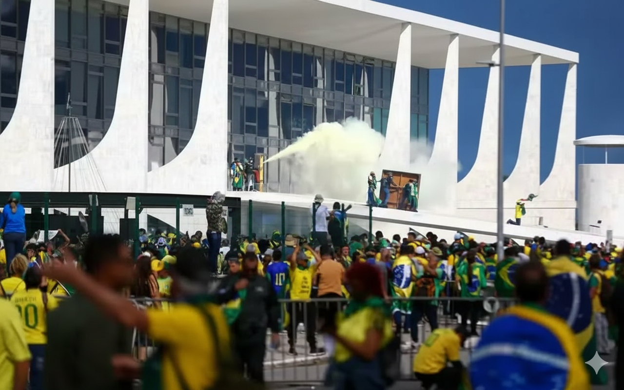 Ataques às sedes dos Três Poderes em Brasília (Foto: Reprodução/Marcelo Camargo/Agência Brasil)